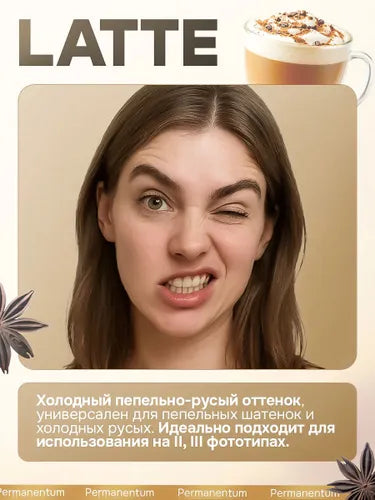 The NYSE "Latte" pigment for permanent makeup and eyebrow tattooing by Alena Pestova is a cool ash-blonde shade, perfect for working on skin with a pronounced red undertone. This pigment allows you to create cool-toned brows without any bluish cast, making it a versatile choice for ash brunettes and cool blondes. It is recommended for use on Fitzpatrick skin types II and III, providing a natural and harmonious result.